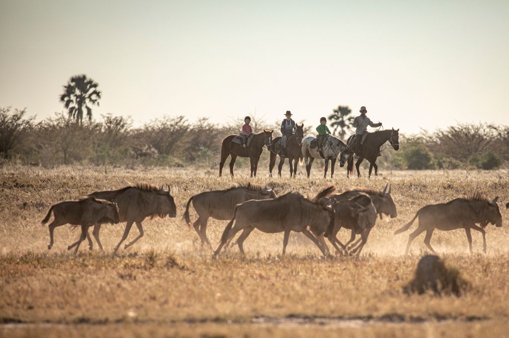 For a different perspective of the pans, you’ll struggle to beat a family horseback safari. Children from the age of five can saddle up here, and it doesn’t matter whether you’ve never put your foot in a stirrup before or you’ve been riding all your life, you’ll be in safe hands with our guides and horses can cater for all abilities. You might imagine that a horseback safari means watching plains game from a distance at a sedate walk, but that’s not the case at all. The wildlife is actually more comfortable with humans on horseback, allowing them close enough to almost become part of the herd, and there’s every chance you’ll see predators – don’t worry, our team are well equipped for every scenario. If you’re well versed in equestrianism, don’t fret that the pace will be too slow – there are plenty of opportunities for a soul-cleansing gallop across the pans.