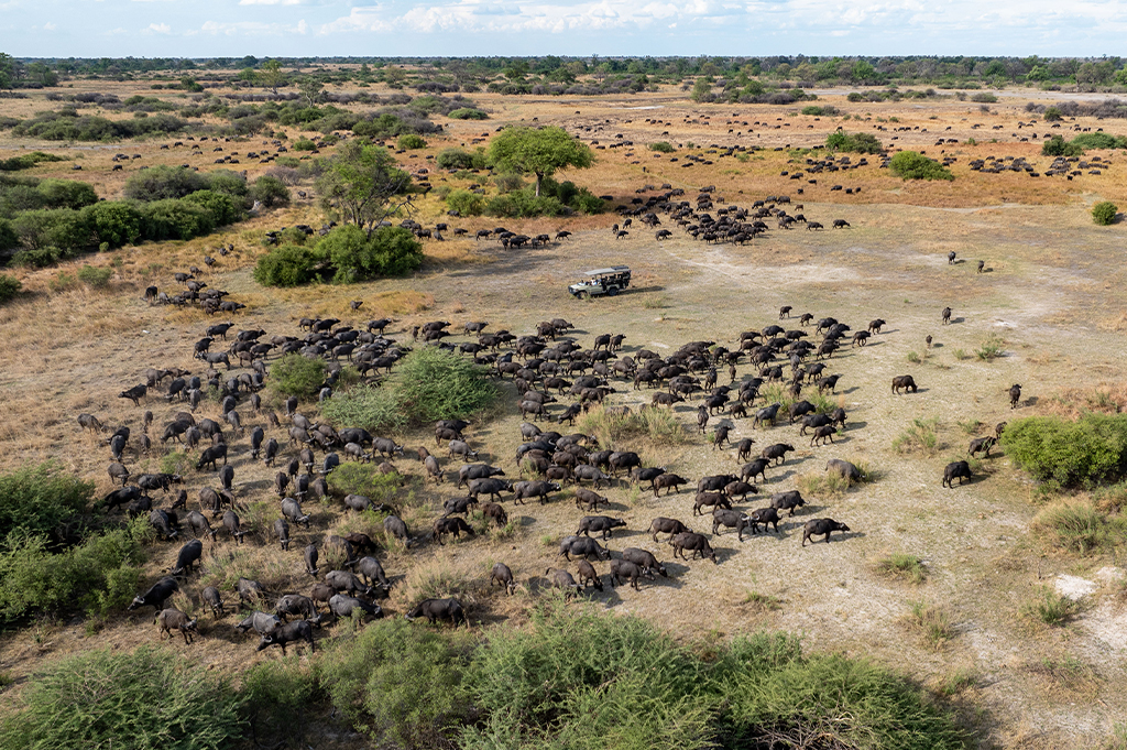 Throughout the year, the park is a stage for extraordinary movement: vast buffalo herds sweeping across the floodplains, elephants following ancient migration routes, and predators – lion, leopard, hyena – who move silently along the edge of it all. It’s wild and it’s intimate.